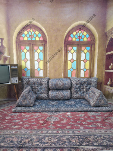 سرویس شاه نشین مبلمان سنتی خان سالار رنگ آبی کد 11568
