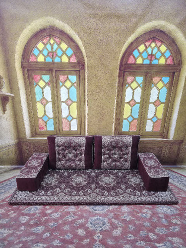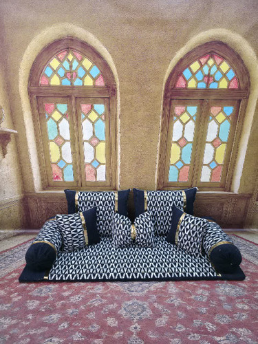 ست 7 تکه پشتی مدل شاه نشین کناره مخمل ترمه کد 369126
