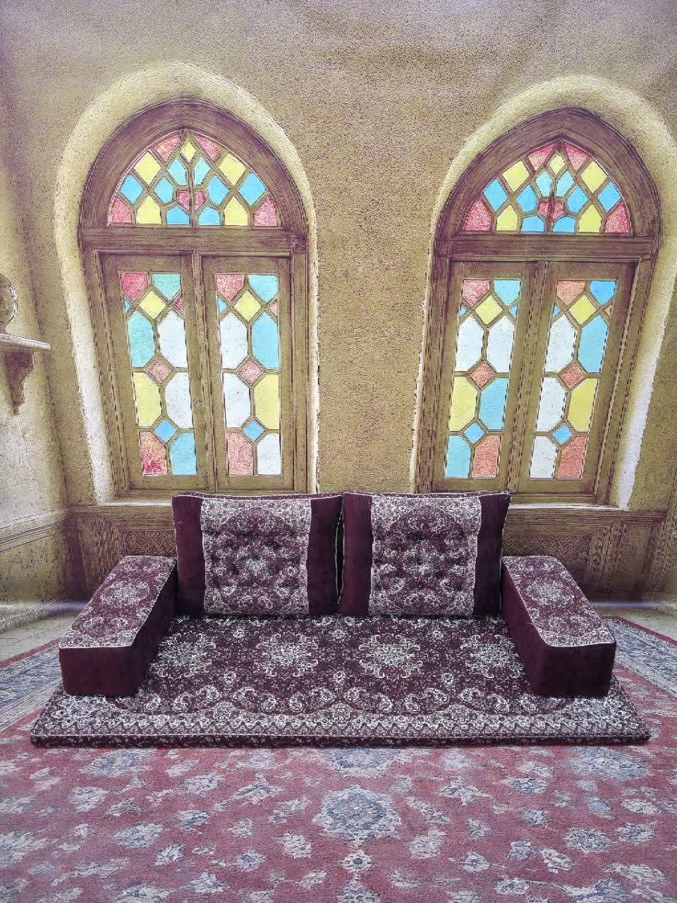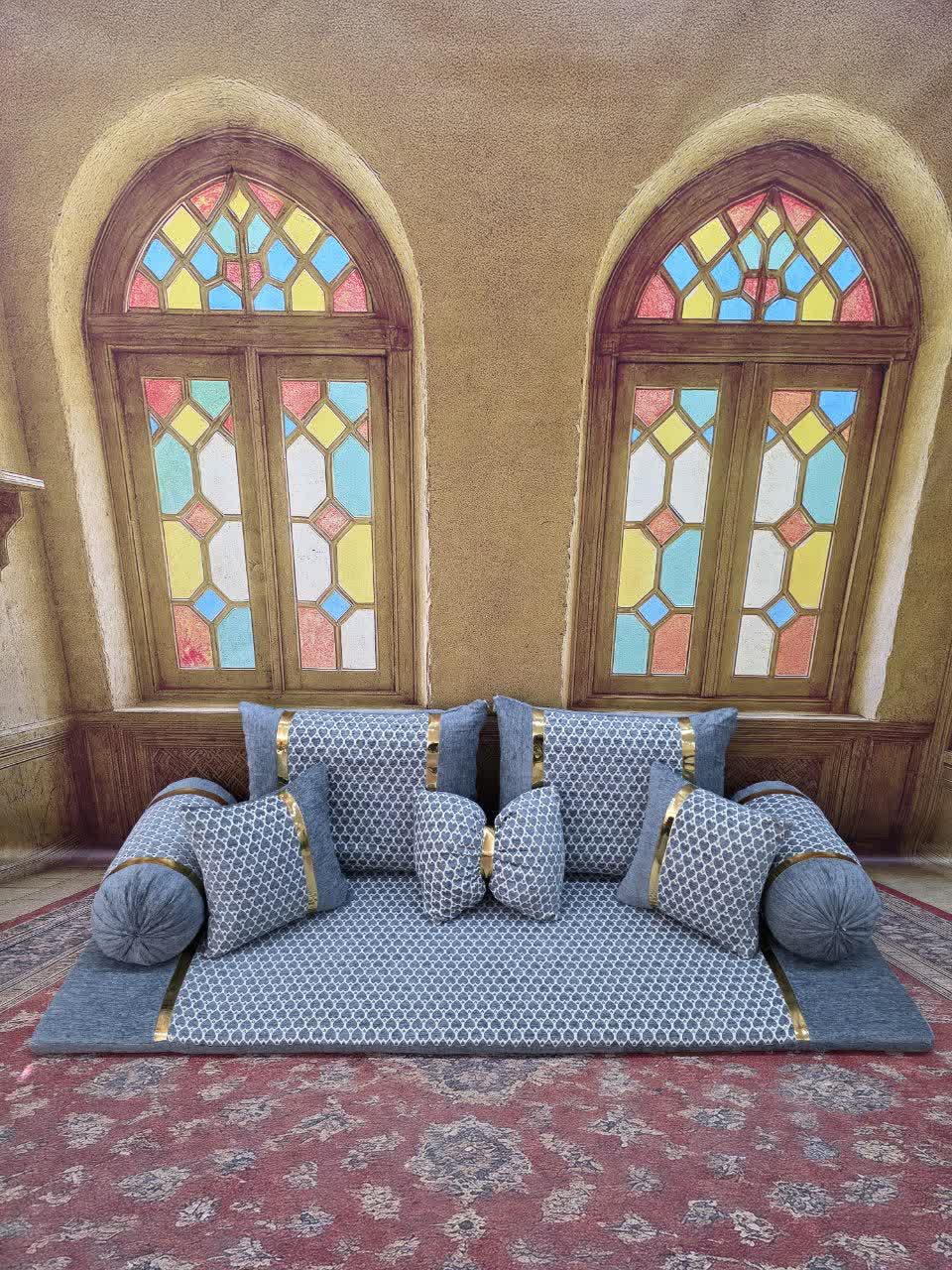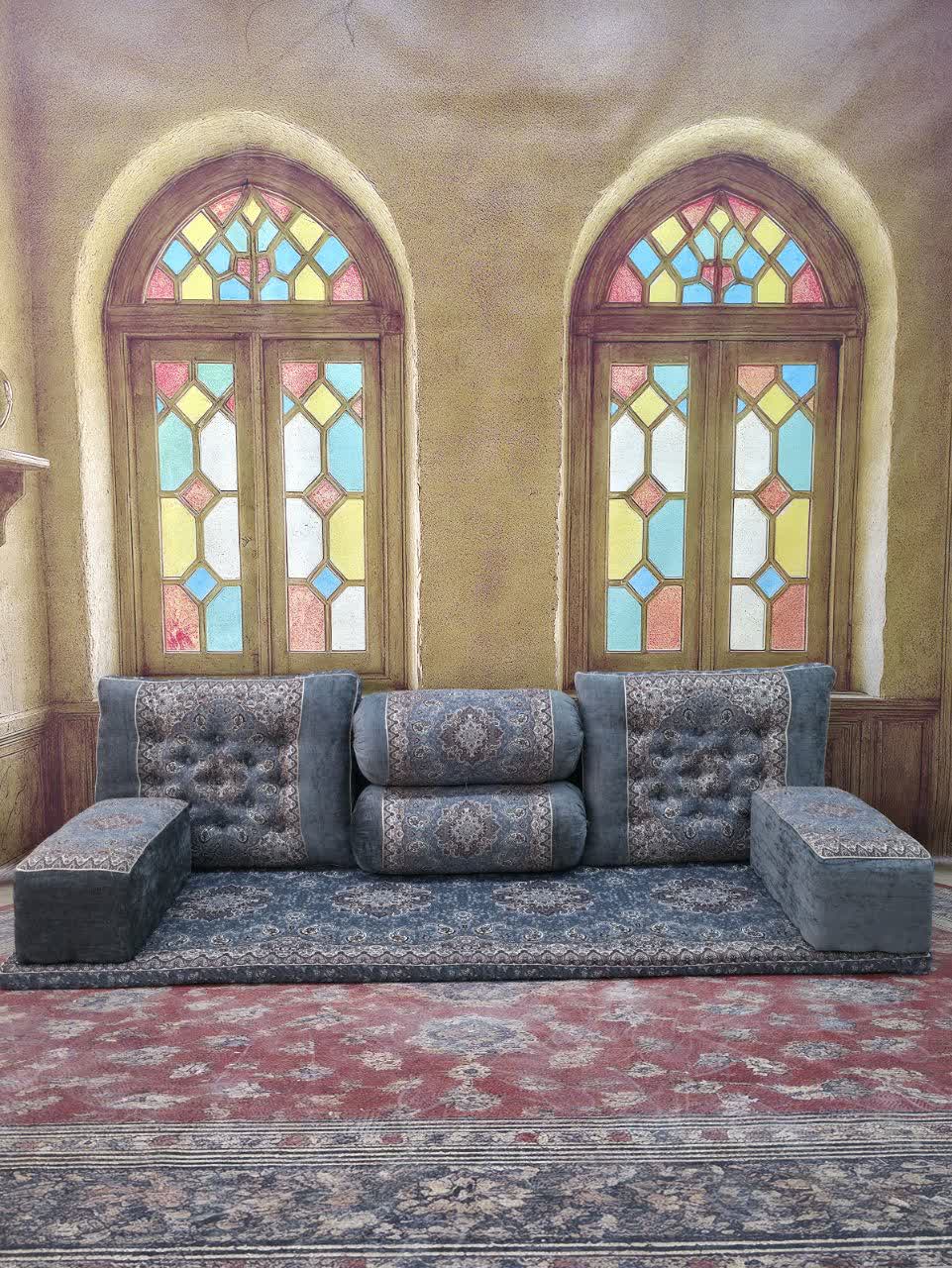 ست 7 تکه پشتی مدل شاه نشین کناره مخمل ترمه کد 369126