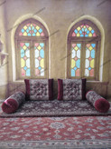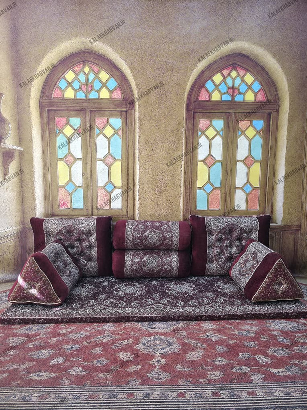 سرویس شامل 2 عدد پشتی 2 عدد بالشت گرد 2 عدد پشتی مثلثی 1 تشک