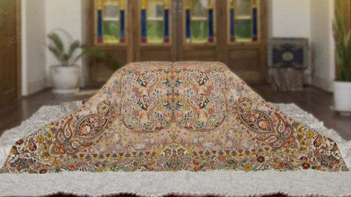پارچه پشت لحاف کرسی کرپ هم رنگ ترمه روی لحاف کرسی