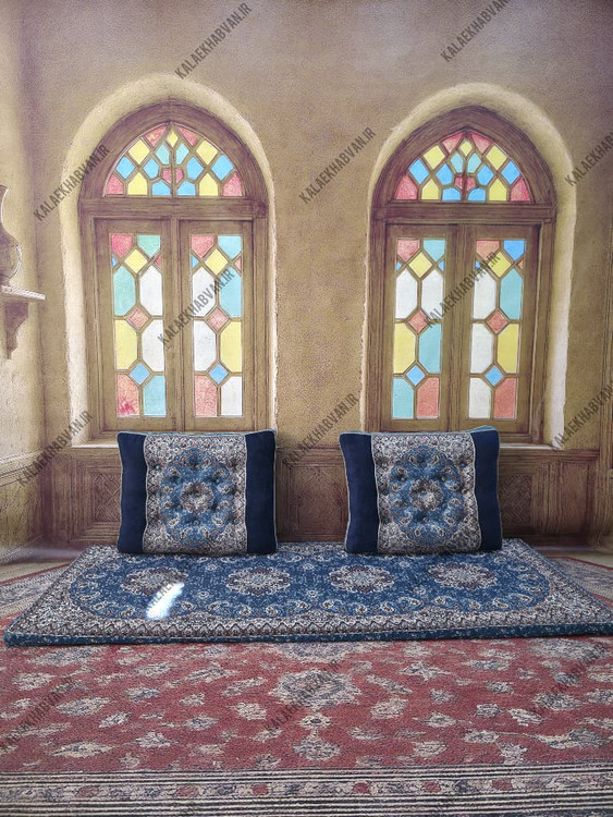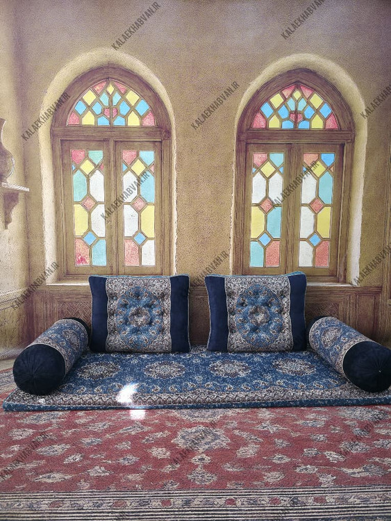 سرویس شاه نشین مبلمان سنتی خان سالار رنگ آبی کد 11568